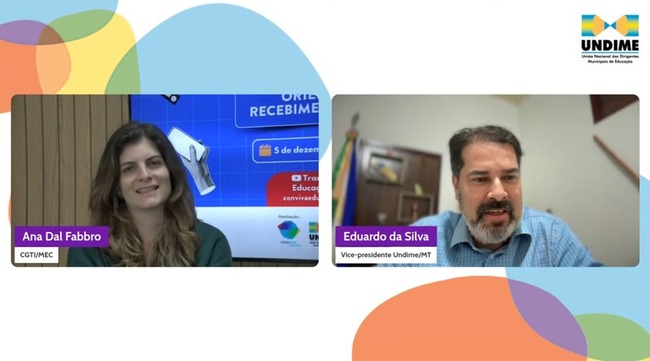 Na última quinta-feira (5), o Conviva Educação promoveu a videoconferência com o tema "FUST Benefício Fiscal: orientações para recebimento dos serviços", com a participação da coordenadora-geral de Tecnologia e Inovação do Ministério da Educação (MEC), Ana Dal Fabbro; e do vice-presidente da Undime Mato Grosso e Dirigente Municipal de Educação de Canarana/MT, Eduardo Ferreira da Silva.