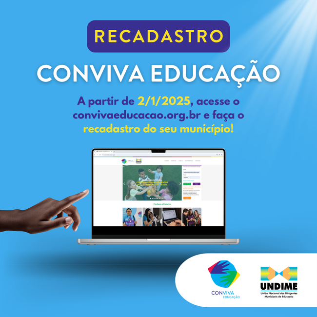 A partir do dia 2 de janeiro, acesse o convivaeducacao.org.br e faça o recadastro do seu município
