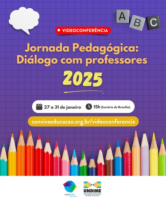 A Undime promoverá a Jornada Pedagógica 2025: diálogo com professores, de 27 a 31 de janeiro. Serão cinco dias de debates sobre assuntos relevantes para o contexto da educação no âmbito municipal. A programação contempla discussões de assuntos como autoconhecimento, autocuidado, empatia e colaboração; planejamento de ensino; currículo em Educação integral; alfabetização, letramento e multiletramentos; e Educação Especial na perspectiva inclusiva.