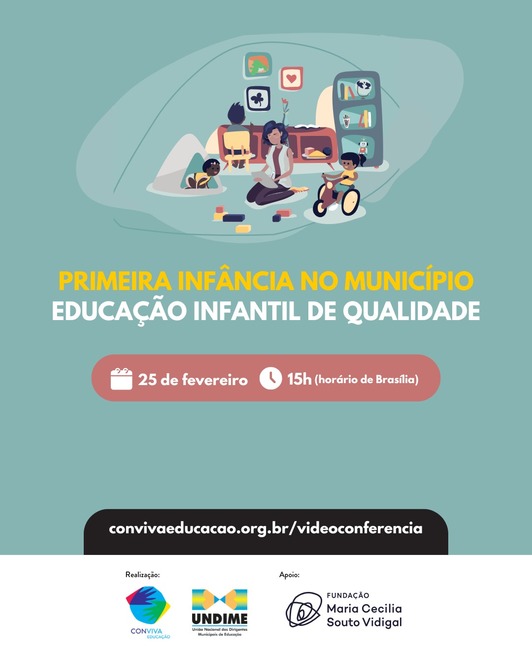 Pensando nisso, a Undime, em parceria com a Fundação Maria Cecilia Souto Vidigal, promoverá na terça-feira, 25 de fevereiro, a videoconferência "Primeira Infância no Município: Educação Infantil de qualidade". A transmissão on-line será às 15h (horário de Brasília) pelo canal do Conviva Educação no YouTube.