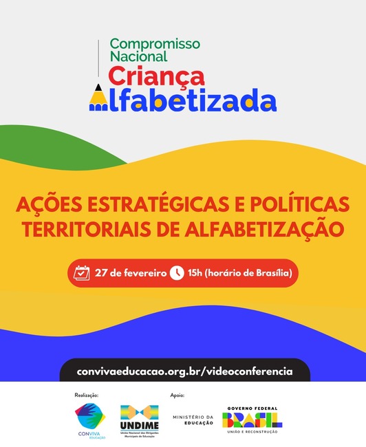 Nesta quinta-feira (27 de fevereiro), às 15h (horário de Brasília), a Undime promove videoconferência para falar sobre o Compromisso Nacional Criança Alfabetizada. O evento on-line conta com o apoio do Ministério da Educação e será transmitido pelo canal do Conviva Educação no YouTube.