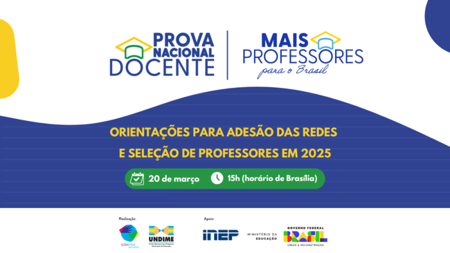 O encontro virtual vai explicar aos dirigentes municipais de Educação como aderir à PND e utilizar o exame nacional para a seleção de professores em cada rede. Além disso, o MEC lançará o Guia de Orientações para apoiar os entes federativos no processo e no exame, que ocorrerá no segundo semestre de 2025.