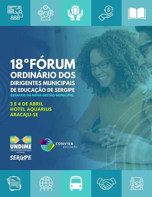 A Undime seccional Sergipe realizará, nos dias 3 e 4 de abril, em Aracaju, o 18º Fórum Estadual Ordinário dos Dirigentes Municipais de Educação, com o tema “Desafios da Nova Gestão Municipal”. Durante os dois dias, o encontro reunirá gestores e técnicos da educação, com o objetivo de discutir, ao longo da programação, temáticas referentes à diversidade, inclusão, equidade na educação; inovações no regime de colaboração; programas educacionais; busca ativa escolar; educação integral, entre outras.