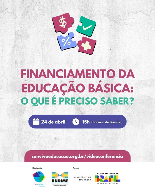 Nesta quinta-feira, 24 de abril, a Undime realizará videoconferência com apoio do Ministério da Educação (MEC) sobre financiamento da Educação Básica. O objetivo é apresentar e discutir as fontes e mecanismos de financiamento da Educação Básica no Brasil, com ênfase no novo Fundo de Manutenção e Desenvolvimento da Educação Básica e de Valorização dos Profissionais da Educação (Fundeb), no Salário-Educação e nos programas federais voltados às redes públicas de ensino. A proposta é subsidiar tecnicamente dirigentes municipais de educação, com destaque para os que estão em início de mandato, e suas respectivas equipes técnicas.