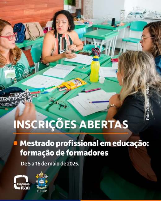 A Fundação Itaú é parceira da PUC (Pontifícia Universidade Católica) de São Paulo no curso “Mestrado profissional em educação: formação de formadores”. Serão selecionados até 30 candidatos que terão aulas sobre desenvolvimento do profissional de formação. Os interessados devem se inscrever até às 16 horas do dia 16 de maio no site.