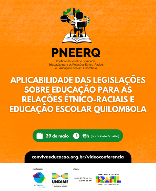 A Undime, por meio da plataforma Conviva Educação e com o apoio do Ministério da Educação, realiza no dia 29 de maio (quinta-feira), às 15h (horário de Brasília), videoconferência com o tema "Aplicabilidade das legislações sobre Educação para as Relações Étnico-Raciais e Educação Escolar Quilombola".