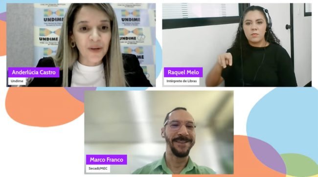 Participaram do debate: Gaaby Pereira, psicopedagoga, ativista dos direitos humanos, educadora popular; Clélia Santos, diretora de Políticas de Educação Étnico-Racial e Educação Escolar Quilombola da Secretaria de Educação Continuada, Alfabetização de Jovens e Adultos, Diversidade e Inclusão (Secadi) do Ministério da Educação; e Marco Antônio Melo Franco, coordenador-geral de Política Pedagógica da Educação Especial também do MEC.
