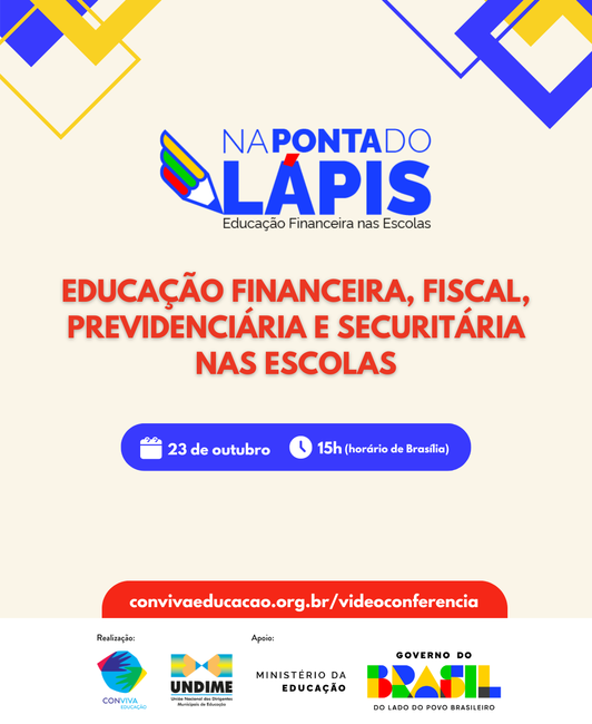Na próxima quinta-feira, 23 de outubro, a Undime, por meio do Conviva Educação, e em parceria com o Ministério da Educação (MEC), vai trazer orientações sobre o Programa Na Ponta do Lápis, iniciativa do MEC e parceiros voltada à educação financeira, fiscal, previdenciária e securitária na educação básica. Nessa transmissão, você vai poder conhecer as principais ações do programa e a matriz de competências em educação financeira, além de obter informações sobre com funciona a adesão à política pelo Simec, que já está aberta.