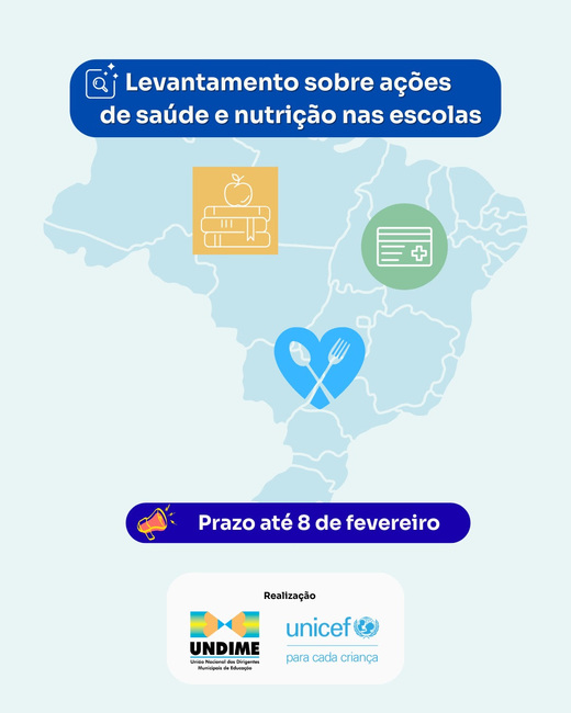 A Undime, em parceria com o UNICEF, está realizando um levantamento nacional para identificar e mapear ações de saúde e nutrição nas escolas públicas municipais de todo o país.