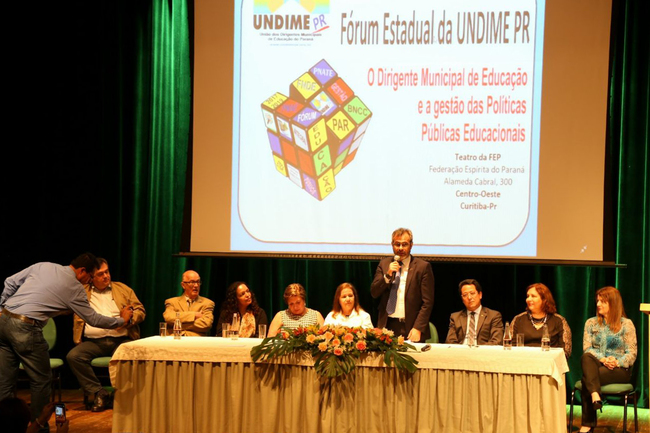 A Undime Paraná reuniu 420 participantes no Fórum Estadual da seccional, nesta terça-feira, 3 abril. O evento, realizado no Teatro da Federação Espírita do Paraná, localizado na capital Curitiba, pautou o tema "O Dirigente Municipal de Educação e a gestão das políticas públicas educacionais" e contou com a participação de dirigentes e membros das equipes técnicas das secretarias.