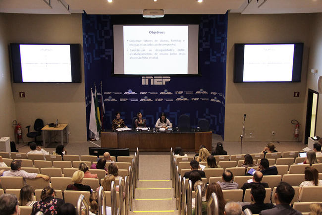 Cerca de 150 professores e especialistas das secretarias estaduais de educação, da Undime e do Instituto Nacional de Estudos e Pesquisas Educacionais Anísio Teixeira (Inep) participaram do seminário sobre as "Desigualdade de Aprendizado e Infraestrutura na Educação Básica: evidências a partir do Sistema de Avaliação da Educação Básica (Saeb)".