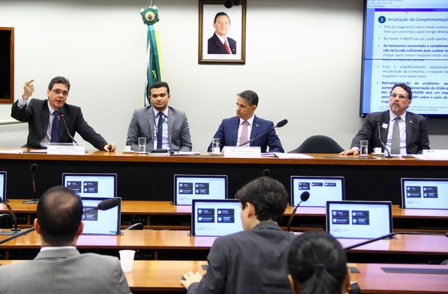 O chefe da Assessoria Especial do Ministro da Fazenda, Marcos Mendes; e o diretor do Departamento de Assuntos Macroeconômicos do Ministério do Planejamento, Fábio Ribeiro Servo, participaram de audiência pública, realizada na última terça-feira (12), pela comissão especial da Câmara que analisa a proposta de Emenda à Constituição (PEC nº 15/15) que torna permanente o Fundeb. Pelas regras atuais, ele está previsto para durar somente até 2020.