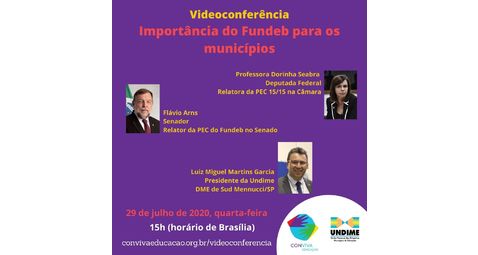 Na próxima quarta-feira, 29 de de julho, será realizada videoconferência sobre a importância do Fundeb para os municípios. O debate, marcado para às 15 ...