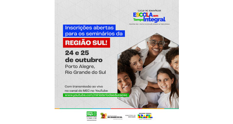 Vagas presenciais são limitadas. Etapa da Região Sul será nos dias 24 e 25 de outubro, em Porto Alegre/RS, com transmissão no YouTube do MEC