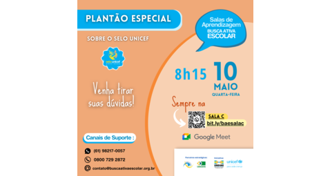 Na próxima quarta-feira, dia 10, às 8h15, equipes municipais da Busca Ativa Escolar, articuladores(as), mobilizadores(as) de educação do Selo UNICEF terão a oportunidade de tirar suas dúvidas sobre com...