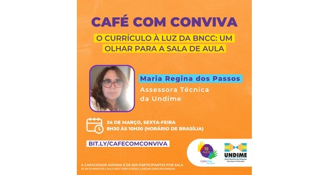 O Café com Conviva do dia 24 março vai debater sobre o tema "O currículo à luz da BNCC: um olhar para a sala de a...