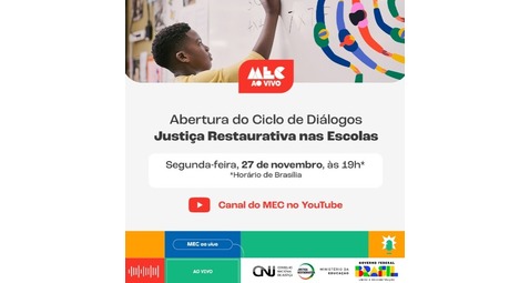 Nos dias 27 e 28 de novembro, o Ministério da Educação vai realizar uma série de diálogos sobre Justiça Restaurativa. Os debates ter&...