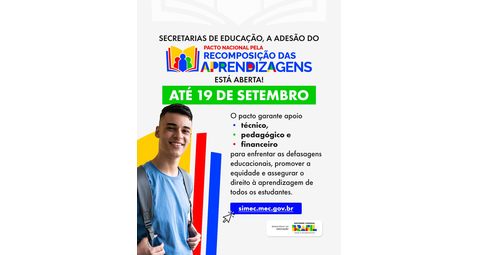 Entes federativos podem aderir ao primeiro ciclo do pacto até 19 de setembro, pelo Simec. Iniciativa visa apoiar a recomposição das aprendizagens de estudantes da educação básica que apresentam defasagens