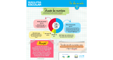 O prazo para alcançar a meta da Busca Ativa Escolar no Selo UNICEF está chegando e quase metade dos municípios cumpriram a ação com sucesso. Dos 2.023 municípios inscritos nesta edição do Selo UNICEF, 1.007 já alcançara...