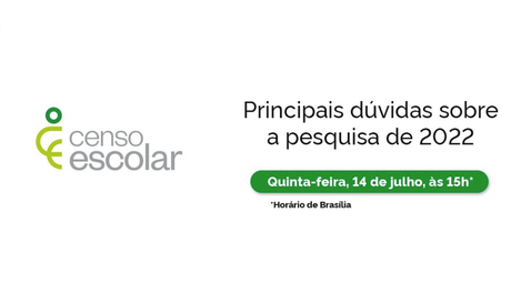 Evento ocorrerá na próxima quinta-feira (14), a partir das 15h, no canal do Inep no YouTube. Coleta de dados do Censo Escolar 2022 termina em 1º/8