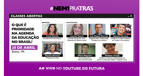 A data será marcada com o encontro online “Classes Abertas”, no YouTube do Canal Futura, das 17h às 19h