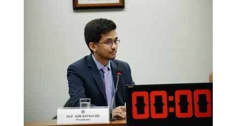 O deputado Kim Kataguiri (União-SP) foi eleito (24 votos favoráveis e 9 em branco) pres...