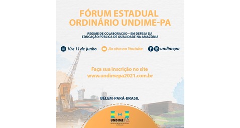 A Undime Pará realizará o Fórum Estadual Ordinário de forma on-line, nos dias 10 e 11 de junho...