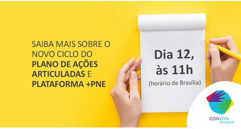 Dia 12, às 11h (horário de Brasília), assista à videoconferência com o MEC sobre o Novo ciclo do Plano de Ações Articuladas e Plataforma +PNE.