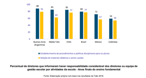 A escolha de procedimentos e políticas disciplinares faz parte do cotidiano de 80% dos diretores de escolas dos anos finais do ensino fundamental no Brasil. O dado faz parte da Pesquisa Internacional sobre Ensino e Aprendizagem (Teaching and Learning International Survey – Ta...